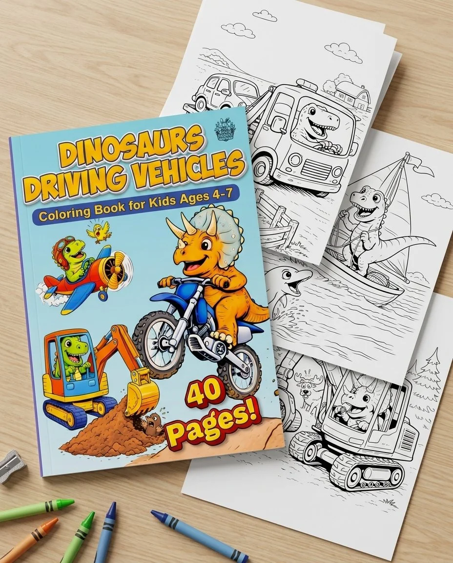 The original Dinosaurs Driving Vehicles coloring book. Filled with 40 unique illustrations for hours of fun!