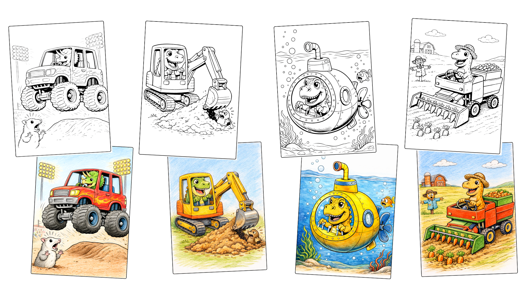 Enjoy these free digital downloads! Thanks for checking us out! Purchase the full collection here: SHOP BOOKS Free Digital Download - Dino Monster Truck $0.00 Add to cart Free Digital Download - Dino Excavator $0.00 Add to cart Free Digital Download - Dino Submarine $0.00 Add to cart Free Digital Download - Dino Harvesting Carrots $0.00 Add to cart