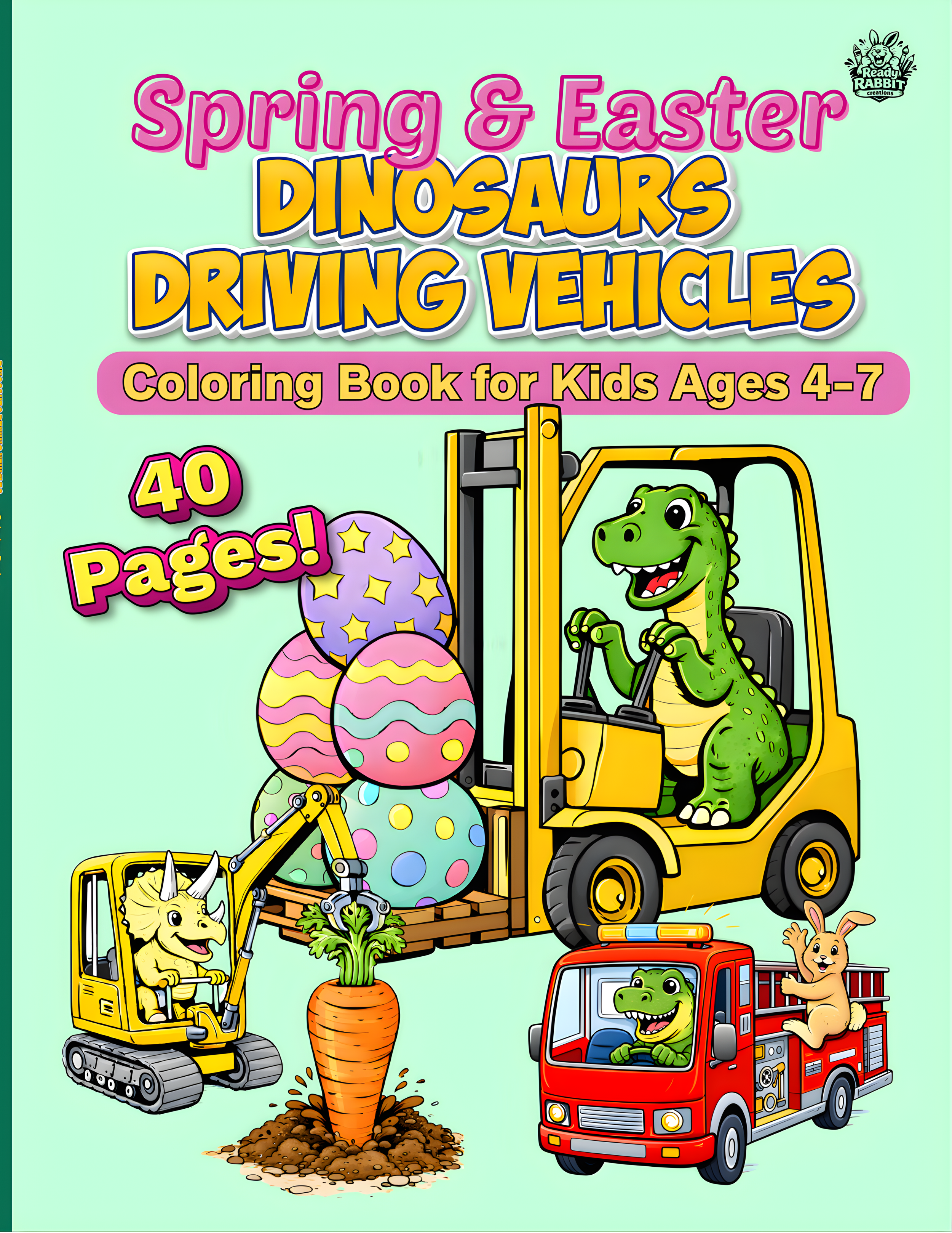 The Spring & Easter Dinosaurs Driving Vehicles coloring book. Filled with 40 unique Spring & Easter themed illustrations for hours of fun!