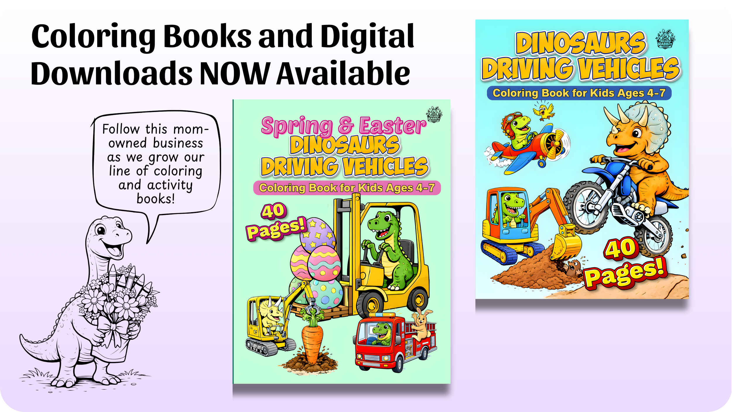 Hello my name is Alicia, AKA “Ready Rabbit Creations”, and I am a mom to two feral children who rarely stop moving, except to color! I create coloring and activity books in the timeless themes that kiddos love.
